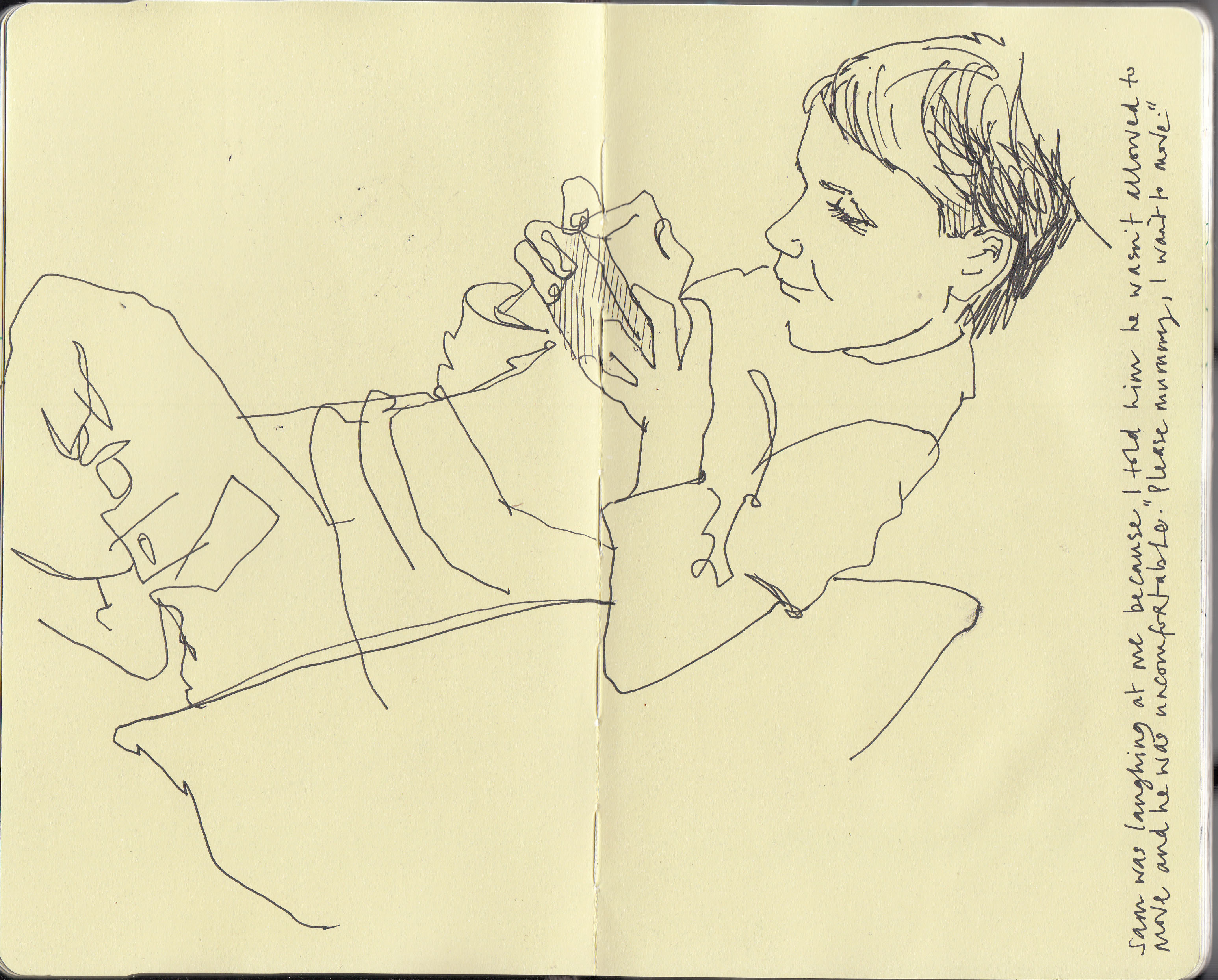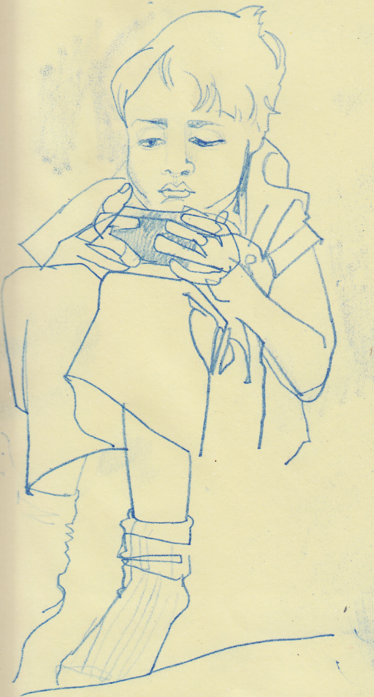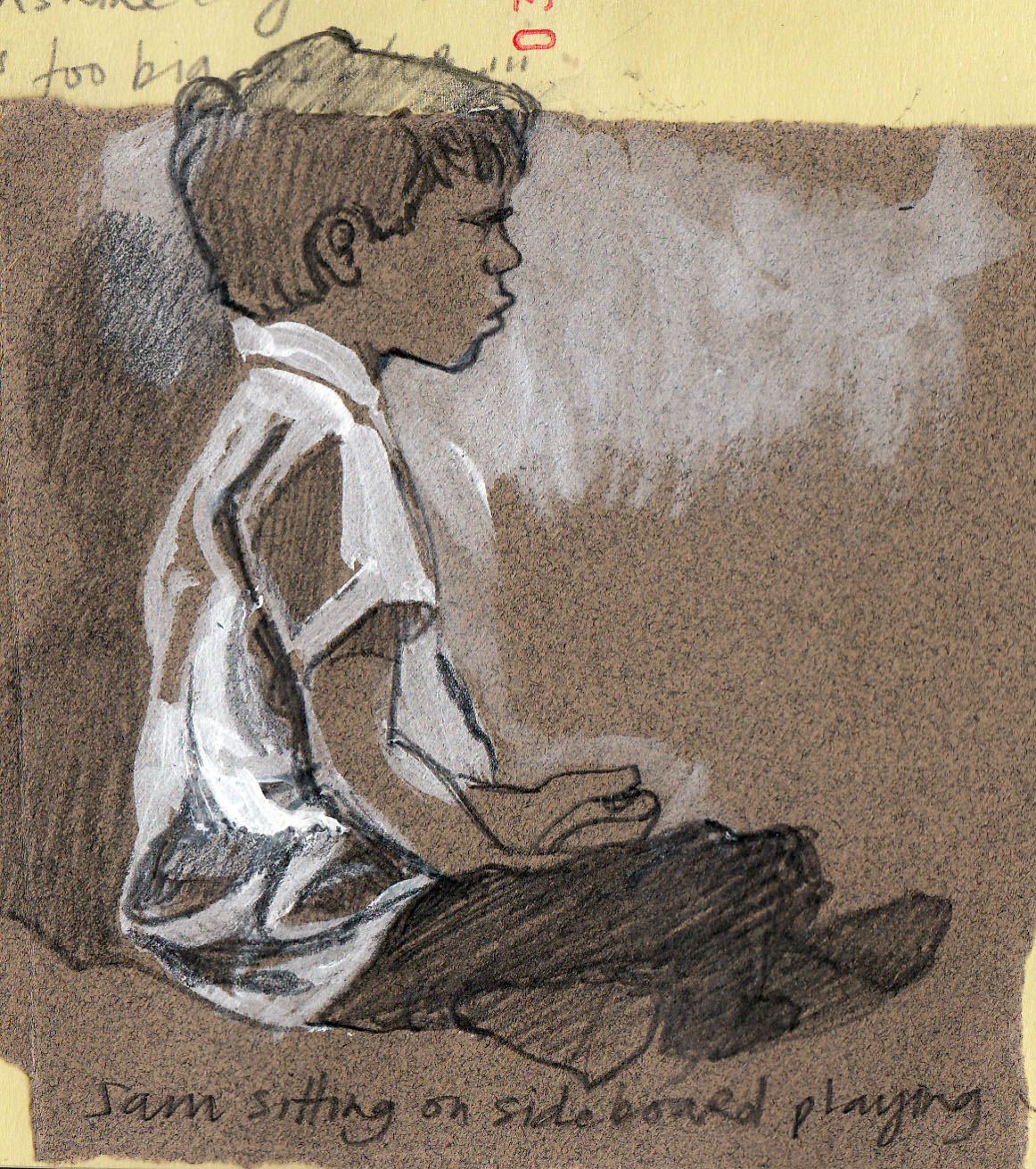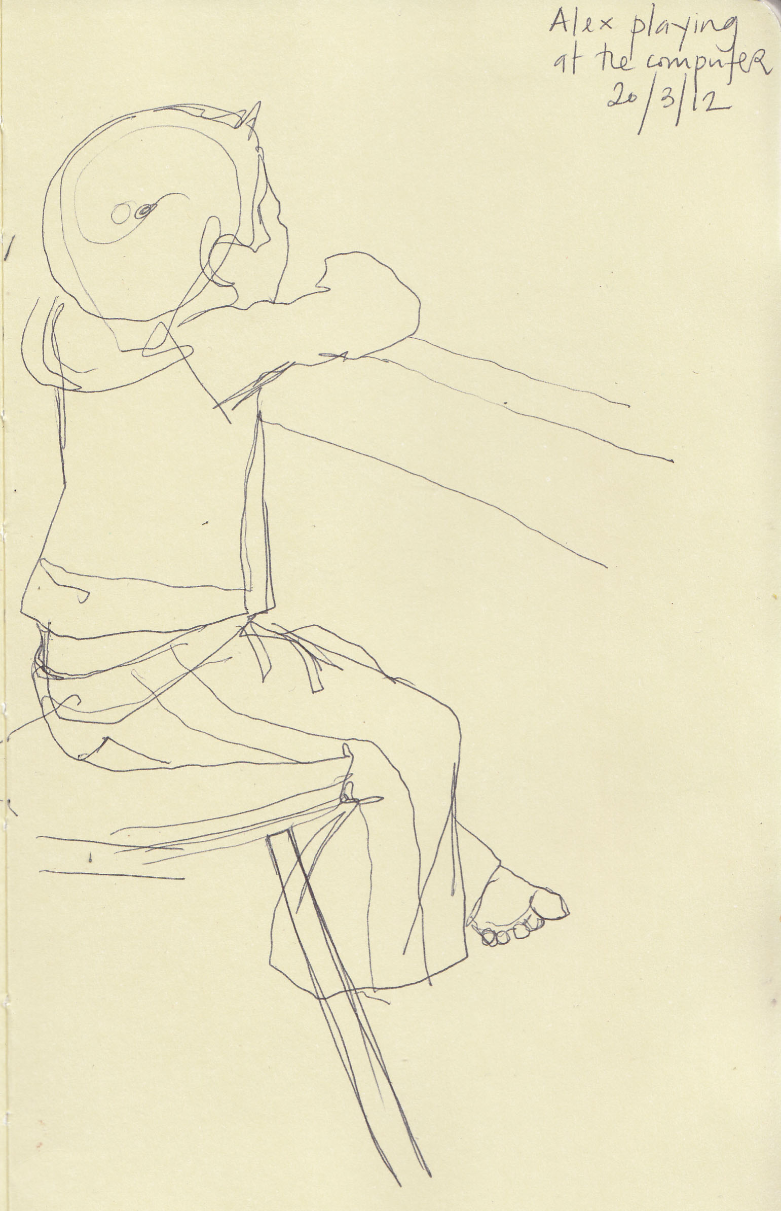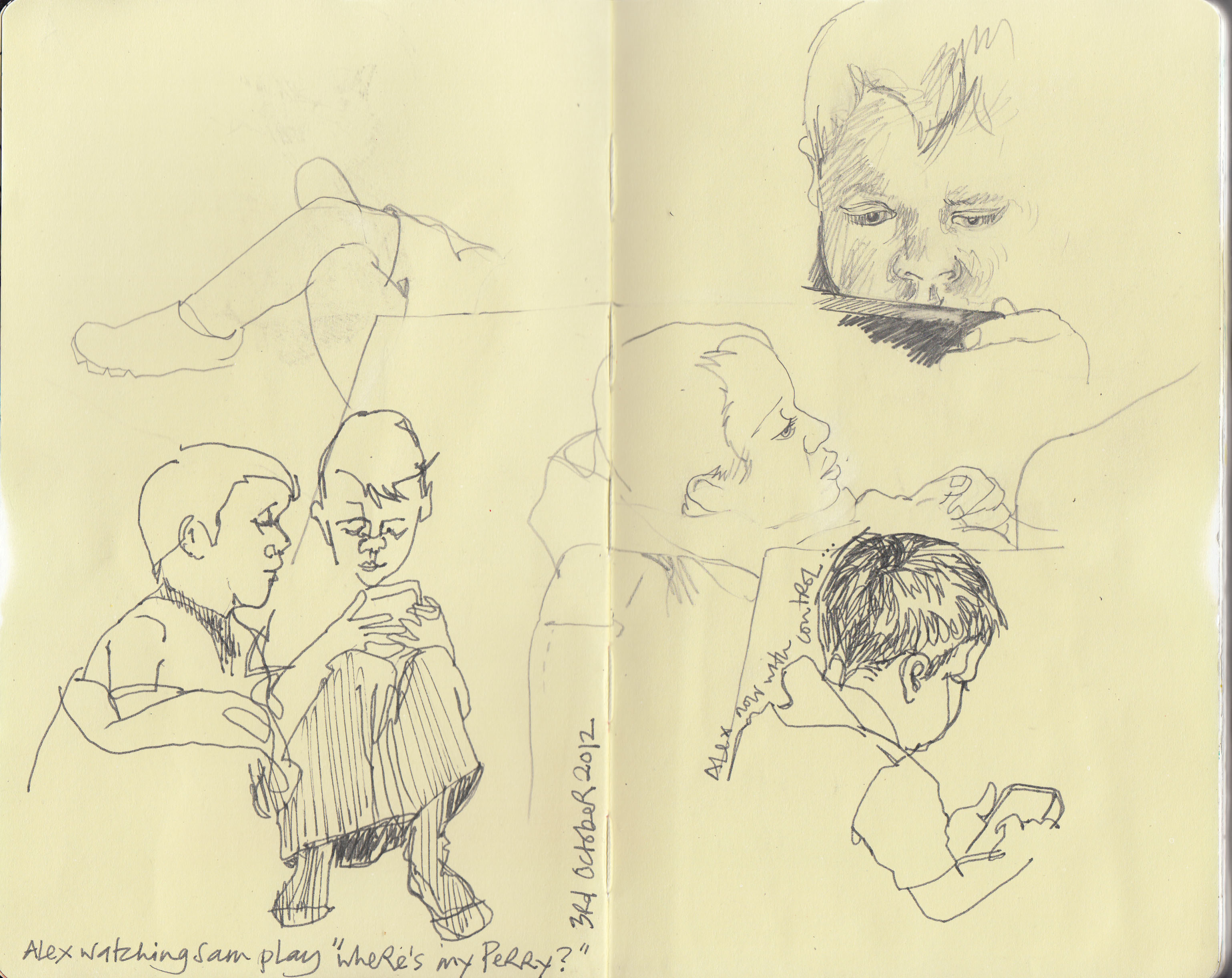I get a bit self-concious that a look through my sketchbook will reveal that all my children ever do is play Wii, iPhone or computer games. We do sometimes go out – even in winter – just that they don’t stay still long enough to draw.