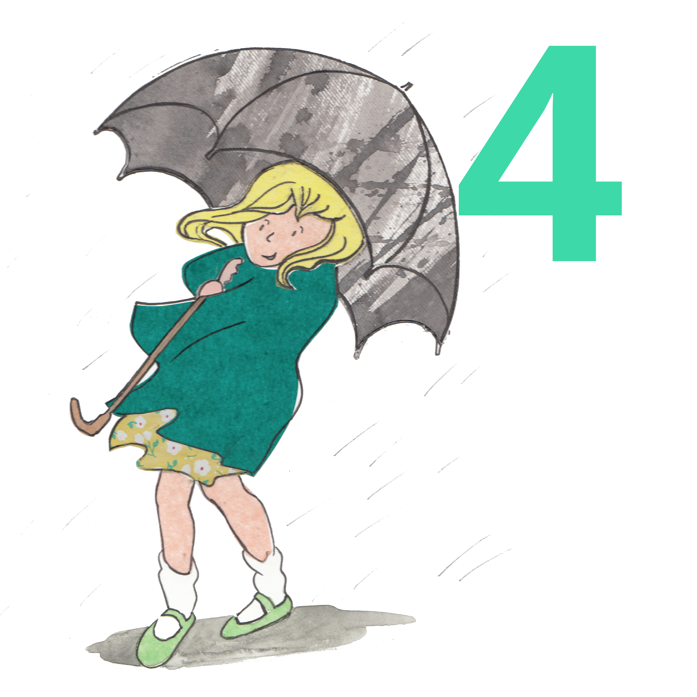 The second card image, No 4, is influenced more by the drawing style of Judith Kerr or Shirley Hughes. Both of whom I admire for their observational skills.