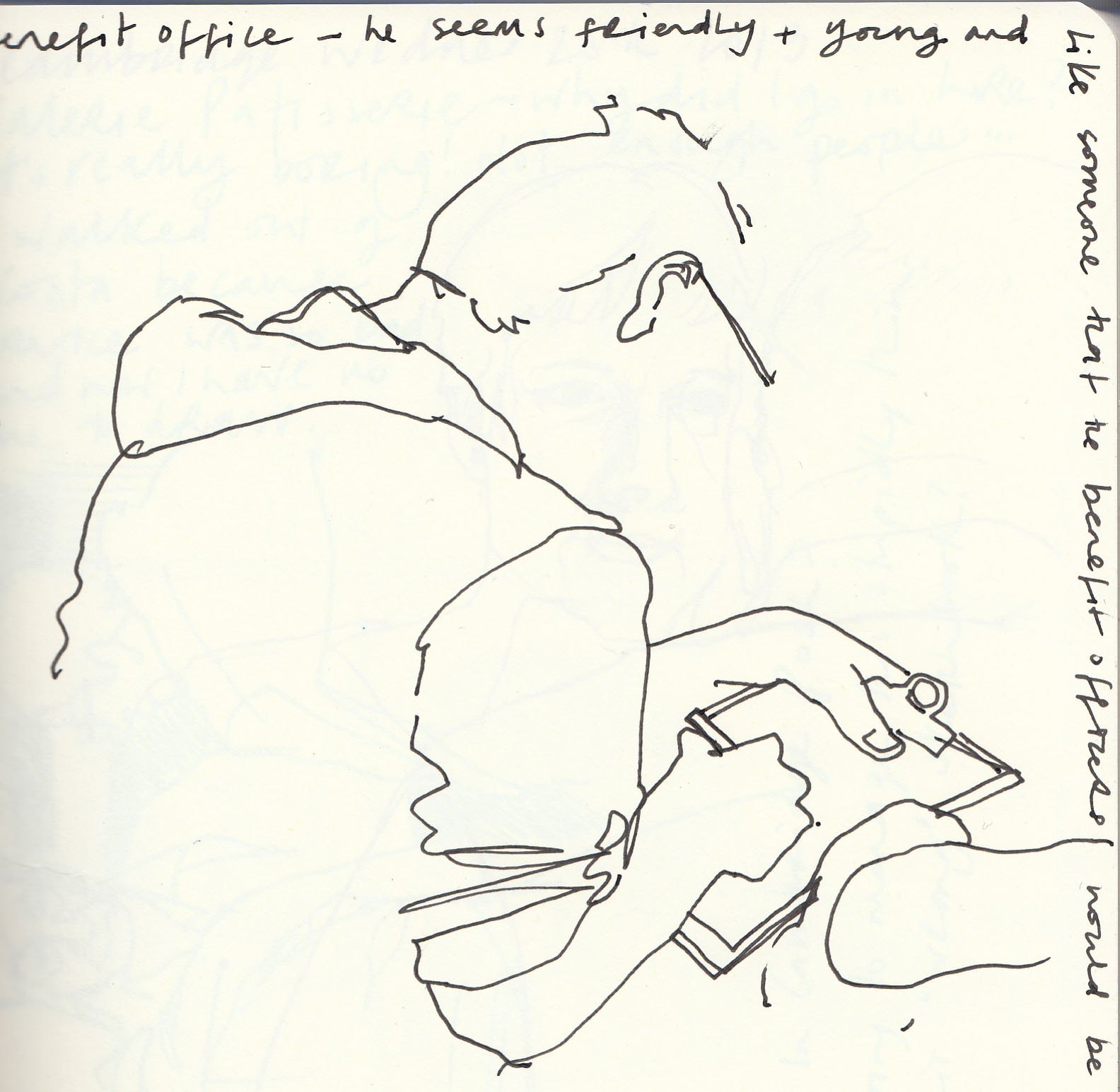 It’s good to go to the job centre with the purpose of drawing. It takes my mind off the fact that I am actually going there to sign on.