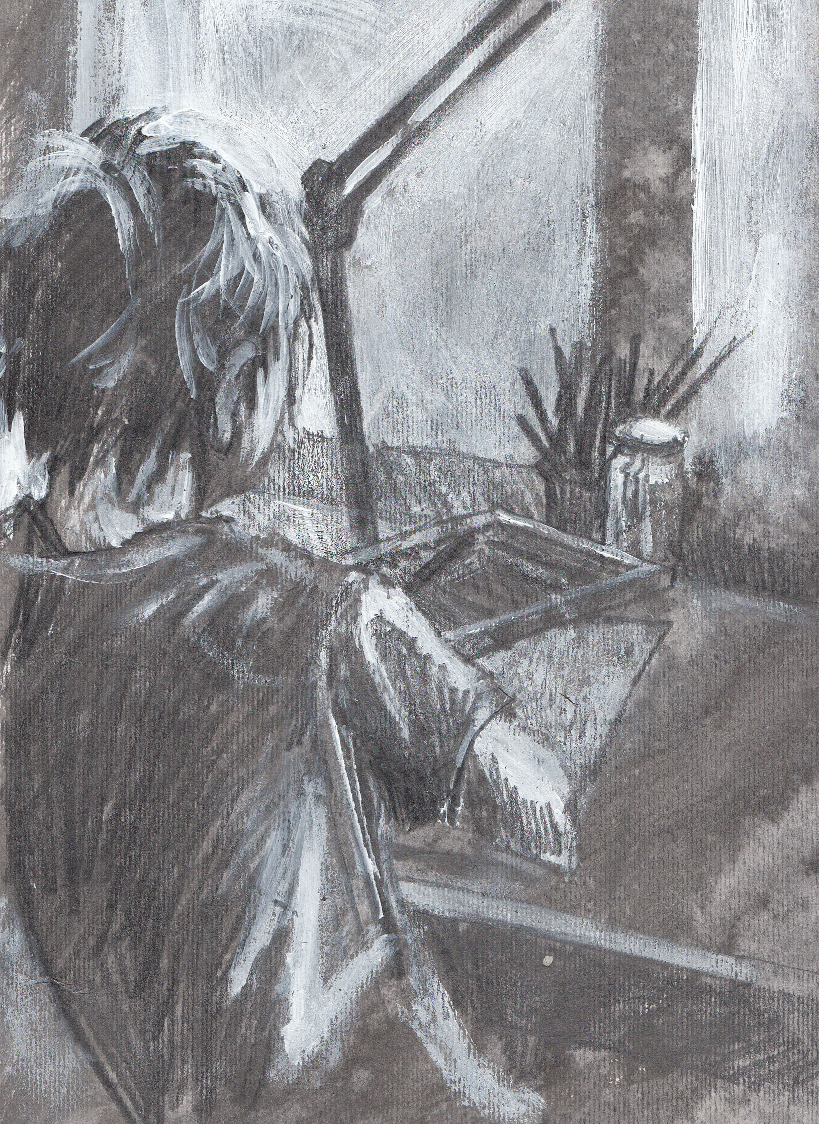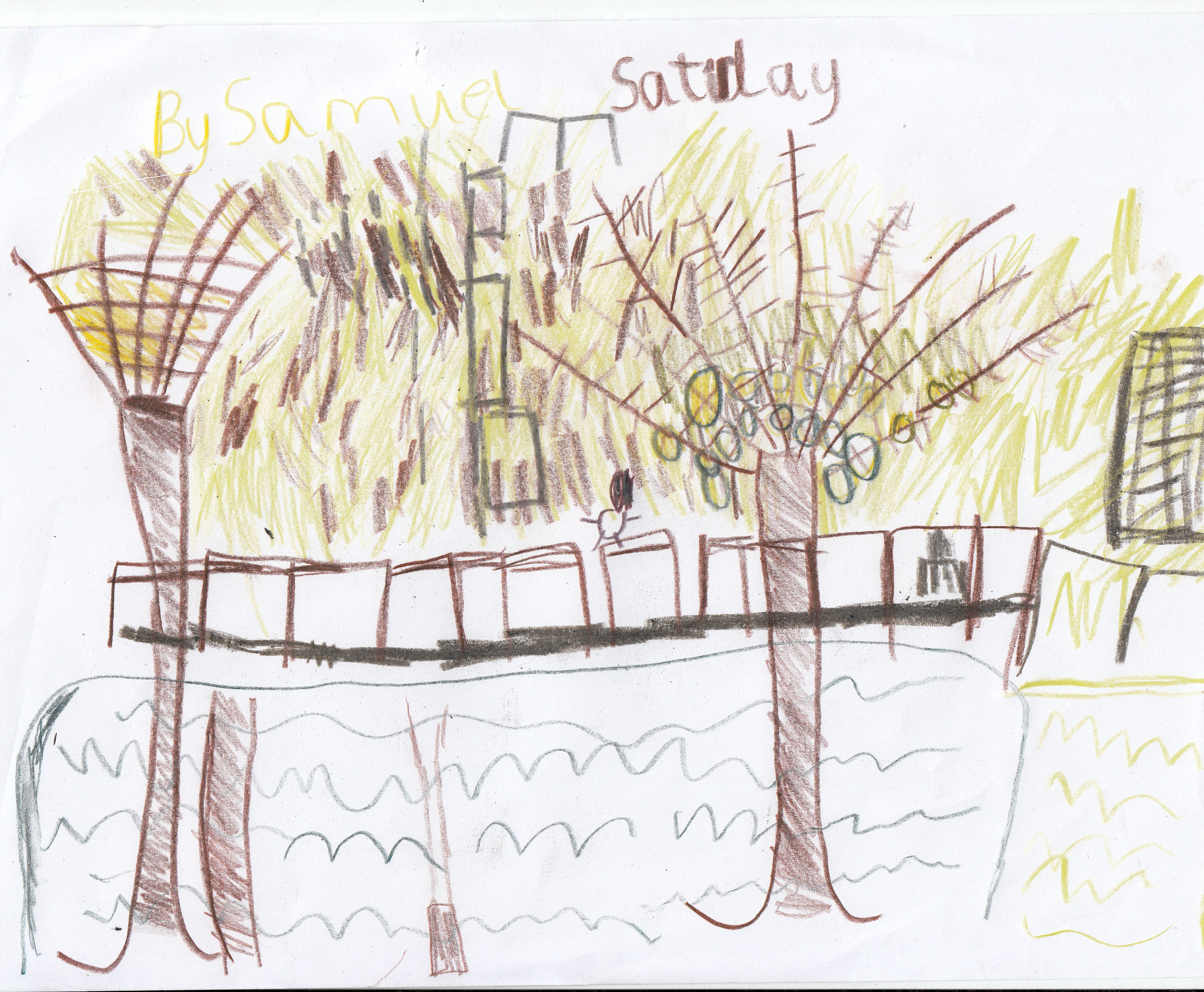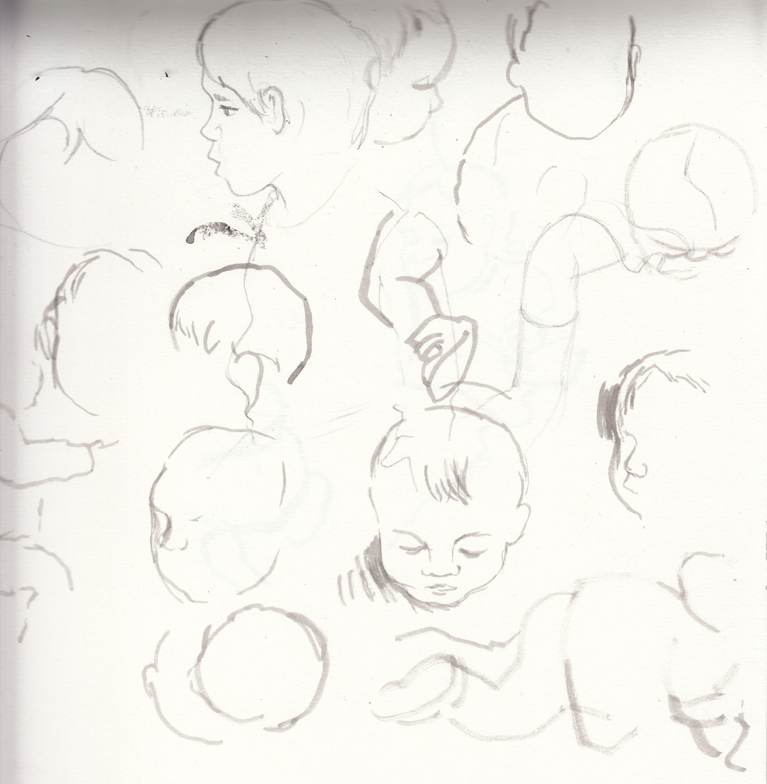 Indoors with the children…. Sam sat at my desk to draw the scene out of the window. I drew him drawing.