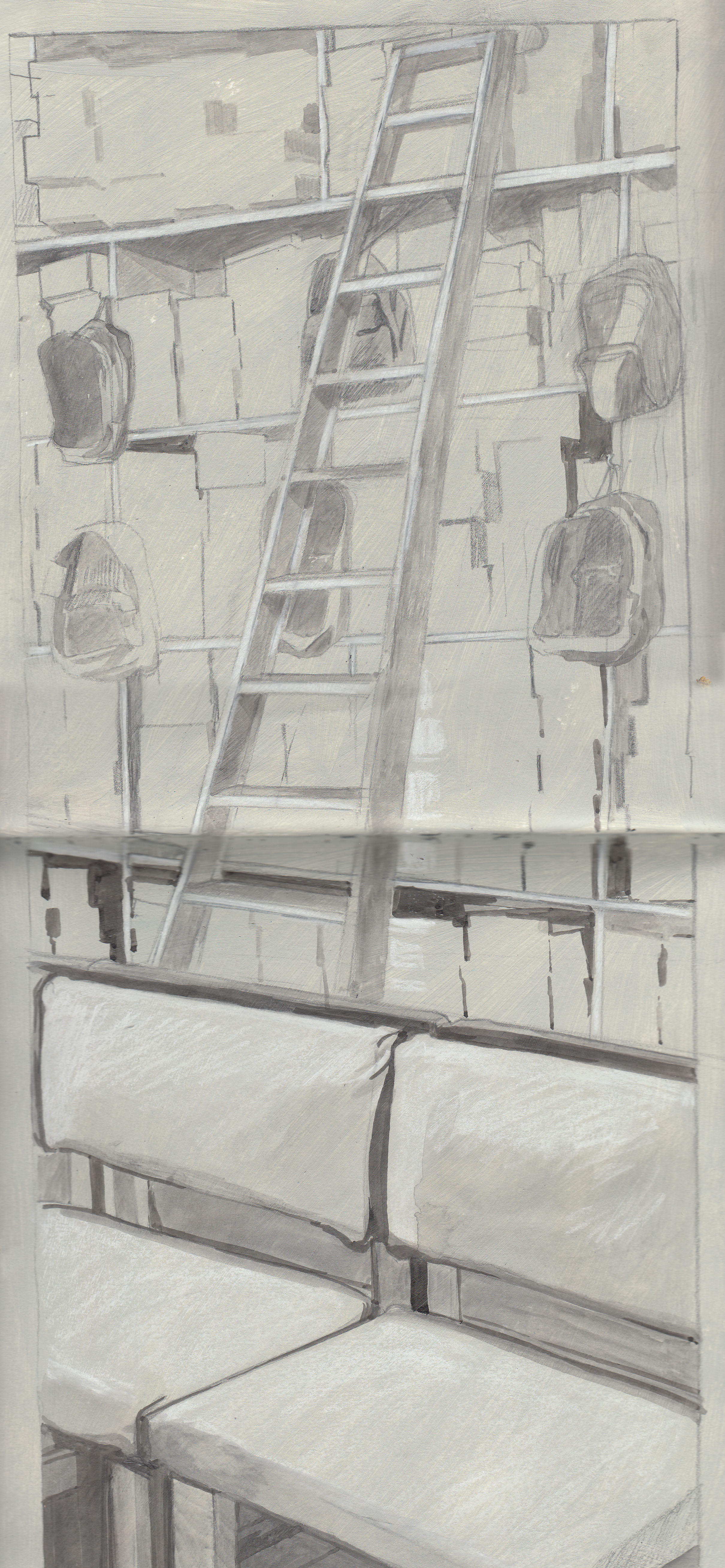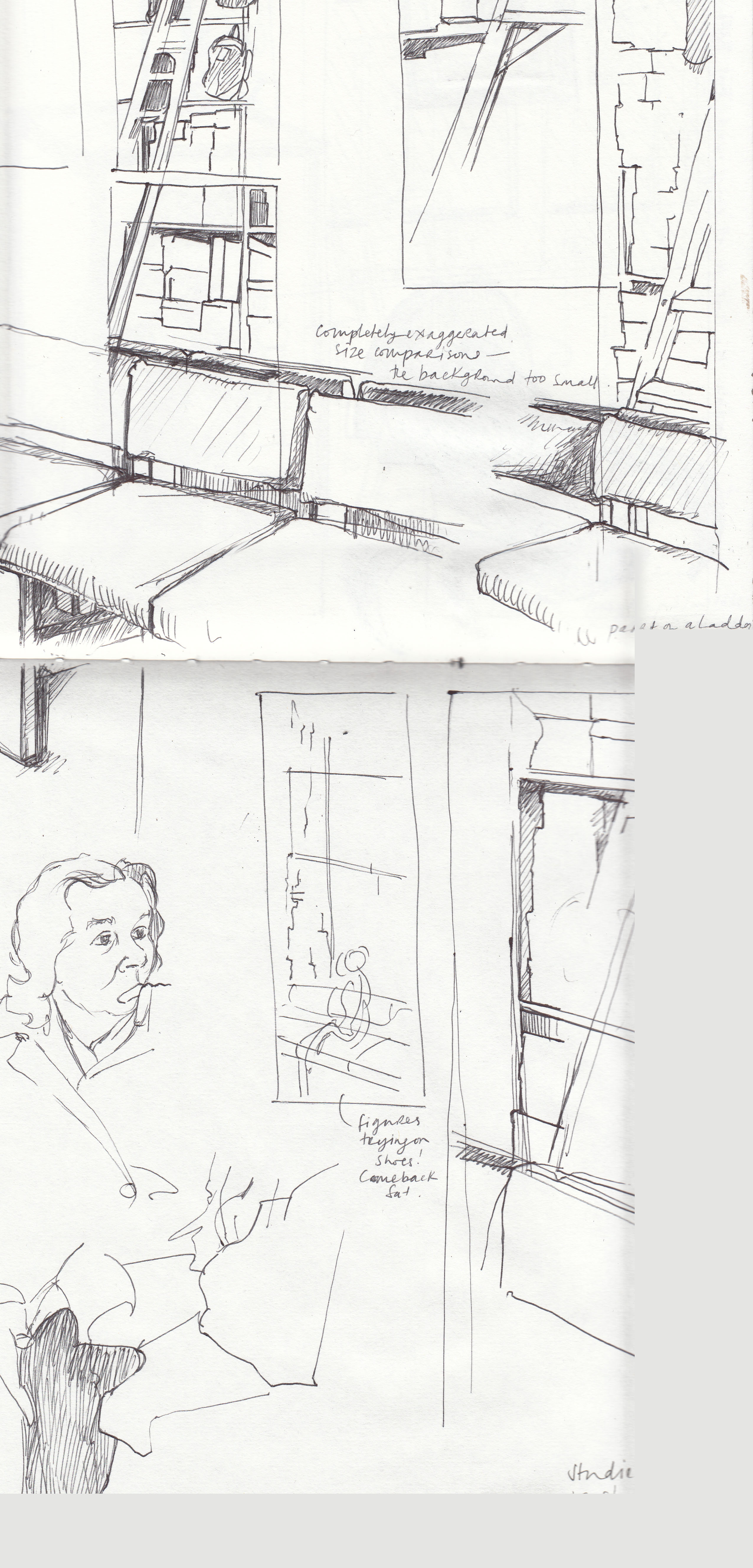 Well that’s about it for now. I am wrestling between drawing in the shoe shop again, the college canteen (so busy!) and the railway station…