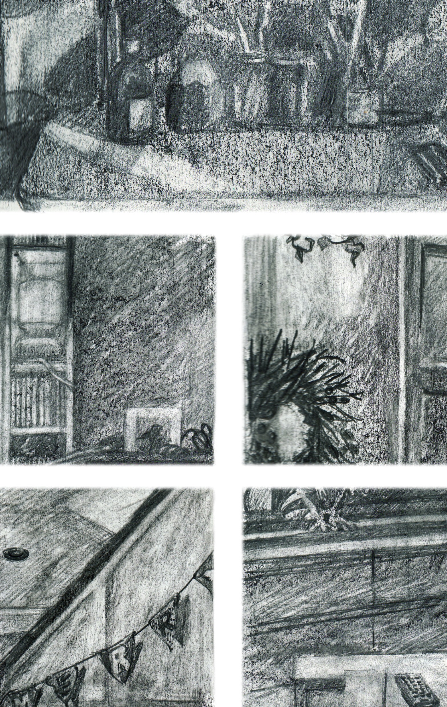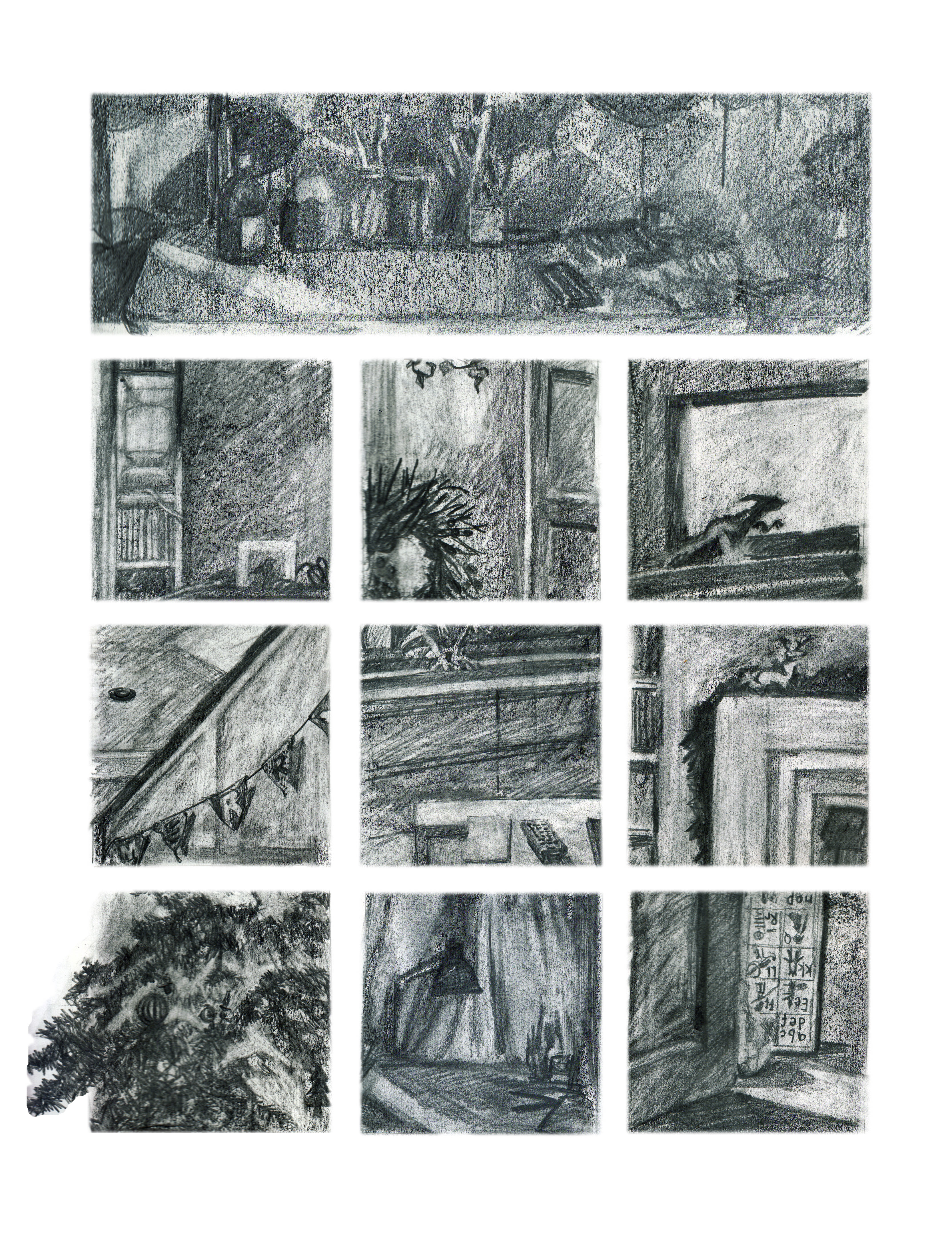 I wanted to work tonally, a technical exercise really but it turns out to be a rather nice walk-around of my house at Christmas 2013… so I’ve put it here! The slight yellow/blue feel to them is due to being on different paper, one more creamy and one more white.
