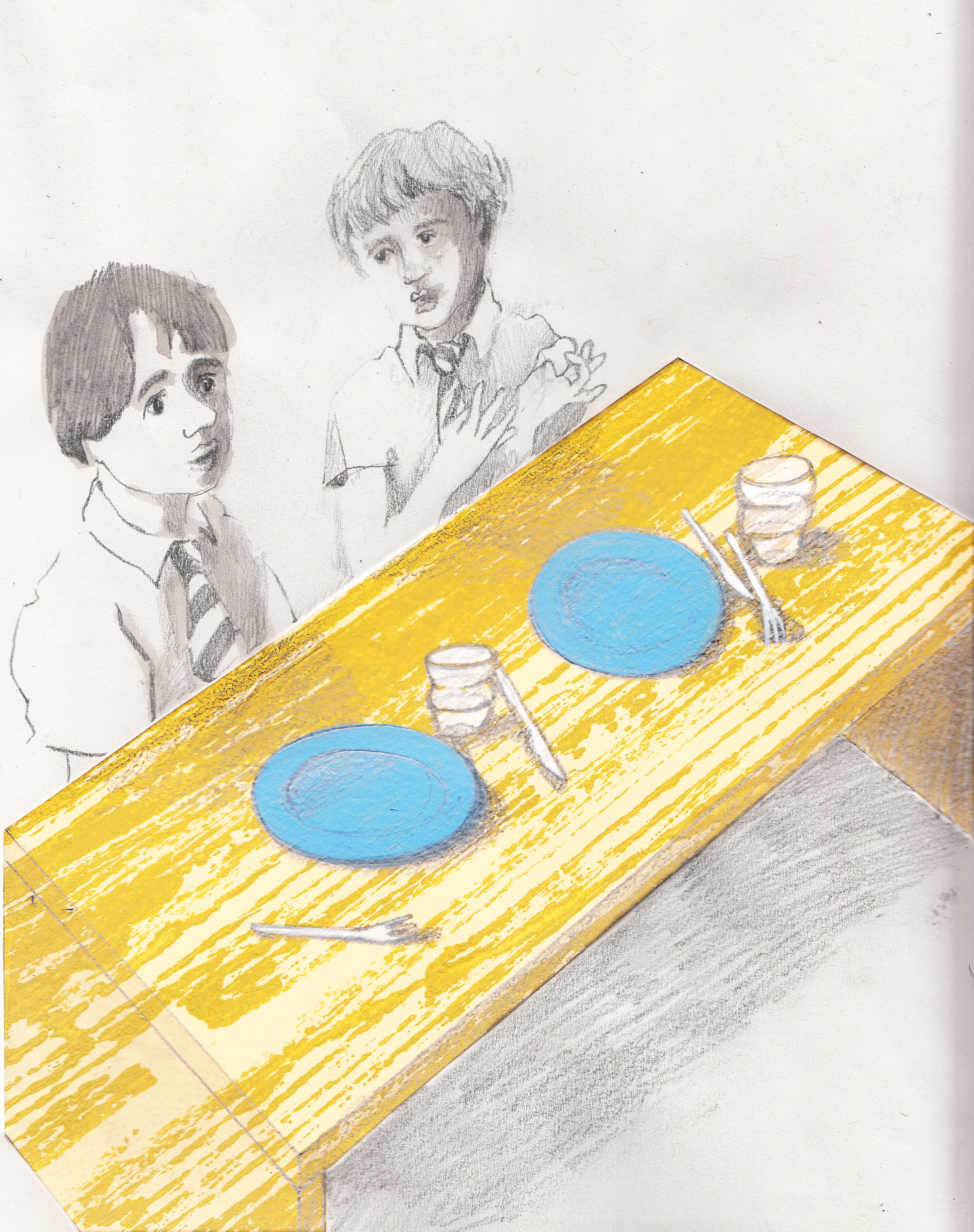 I’ve mucked around a bit with the contrast and the colour of the bench from the actual artwork drawn, but that was in order to improve the drawing. This gives me a feeling of confidence that I am beginning to know what I am aiming for and what to do to get there… the coffee table actually had a greater tonal range which helped it to make sense despite the wood ‘grain’ print going all the way through it, but this was altered in my re-balancing the colour, brightness and contrast post scanning.