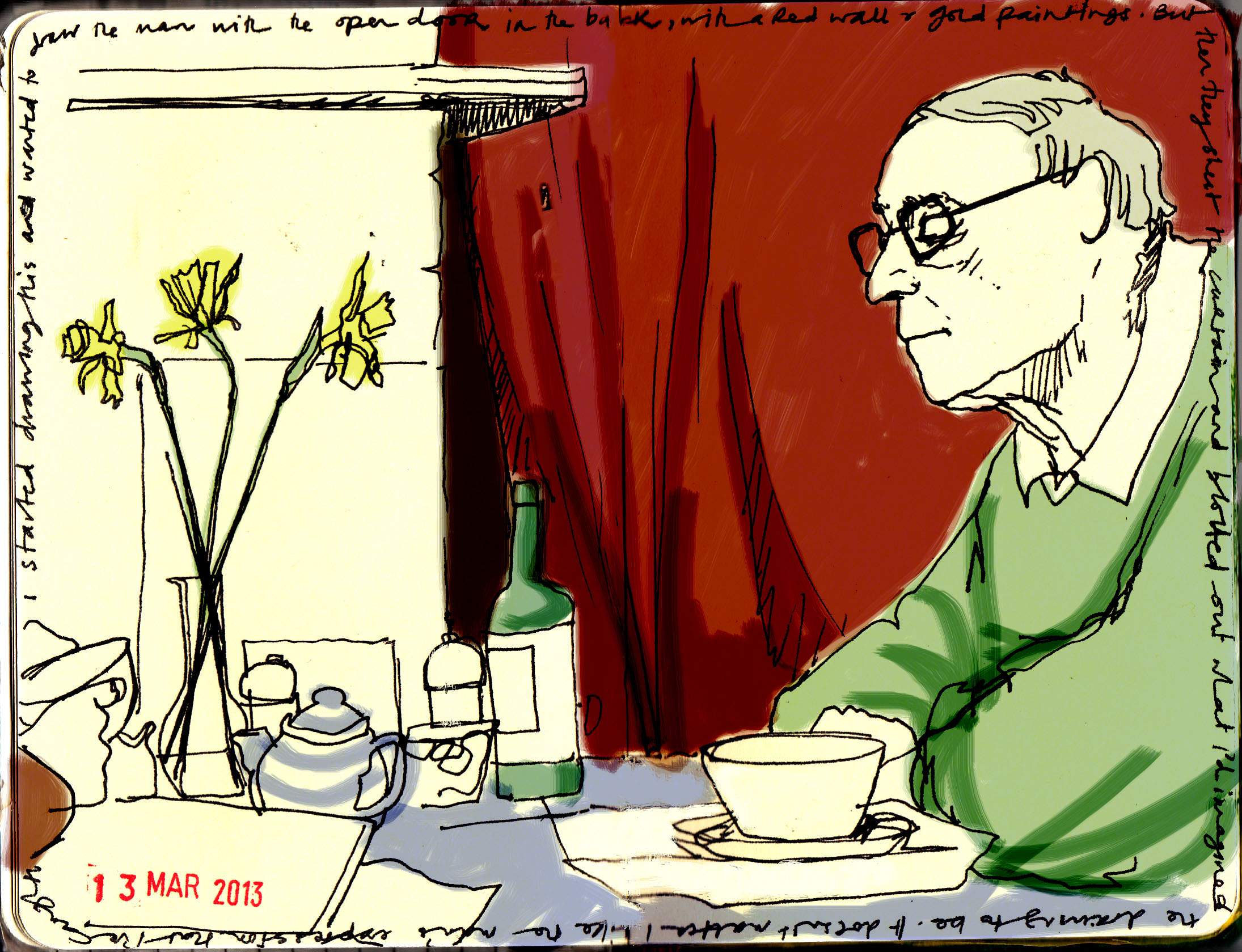 It’s a good thing to be doing as I have always found colouring my line drawings very tricky. I felt as if I was simply ‘colouring-in’, and the drawings became lifeless. Here there’s something in the ‘inkiness’ of the colour that is doing it for me…. but I may have to watch the brightness of those colours!