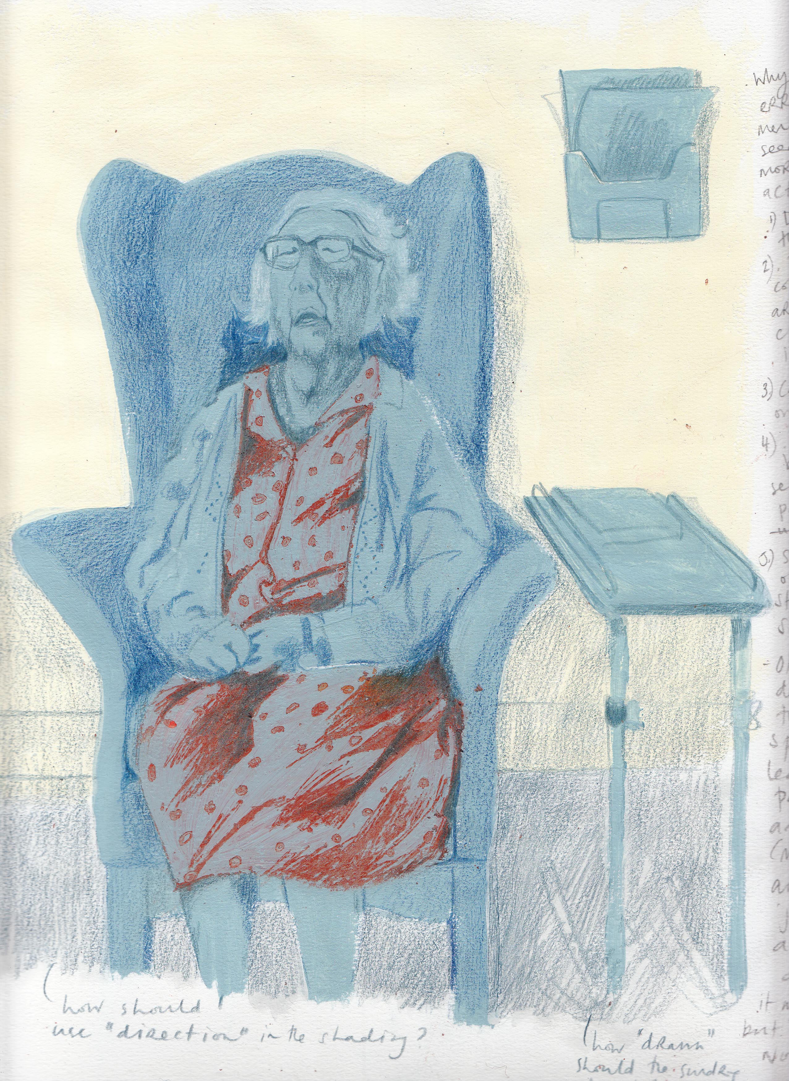 So, why am I drawing in an old people’s home, apart from having ready access to fascinating people to draw, frequently being given coffee, and it being (very) warm?