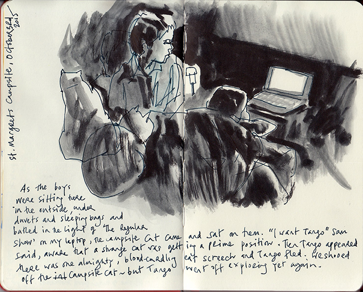 It was a great night. OK, so I did have to ‘sedate’ my two boys with cartoons on the laptop, but it threw an interesting light and I got a rare opportunity to draw and ‘be in the moment’. I think it counts as something we’ll all remember for a while.