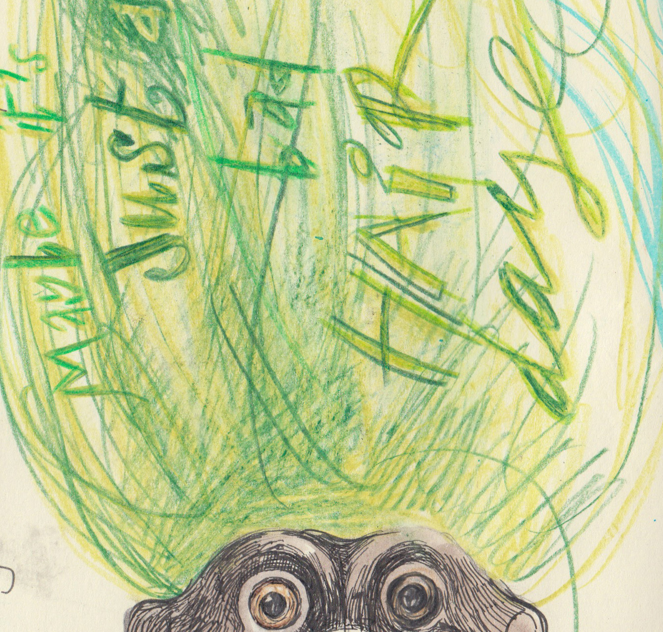 Just looking through my sketchbooks to find some that might be suitable to leave lying around at the MA Graduation show next week (that, by the way, is the reason I have been posting even more infrequently than usual) and I came across this piece of trivial sketchbook play. Quite good fun… I definitely don’t think I have been flinging paint and ink around enough in my MA projects (although Grotsby Snot did involve some ink flinging – maybe that’s why he’s generated the most interest so far). So here – meaningless, but entertaining.