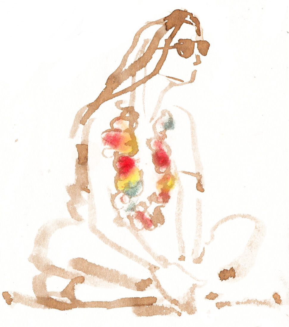 Some of these sketches, are tiny – I’ve enlarged them because I love the simplicity that can happen when you’re looking at a moving subject and drawing it quickly on a small scale. If it’s well observed – perhaps a moment when I’ve been able to concentrate, or when nobody walked in front of the subject, or they didn’t get up and go someplace else – when you’ve caught a particular gesture (the weight strangely distributed when carrying a bucket of water) – it’s satisfying. When the sketch is a bit bigger you can see the simplicity, the energy and texture in the stroke.