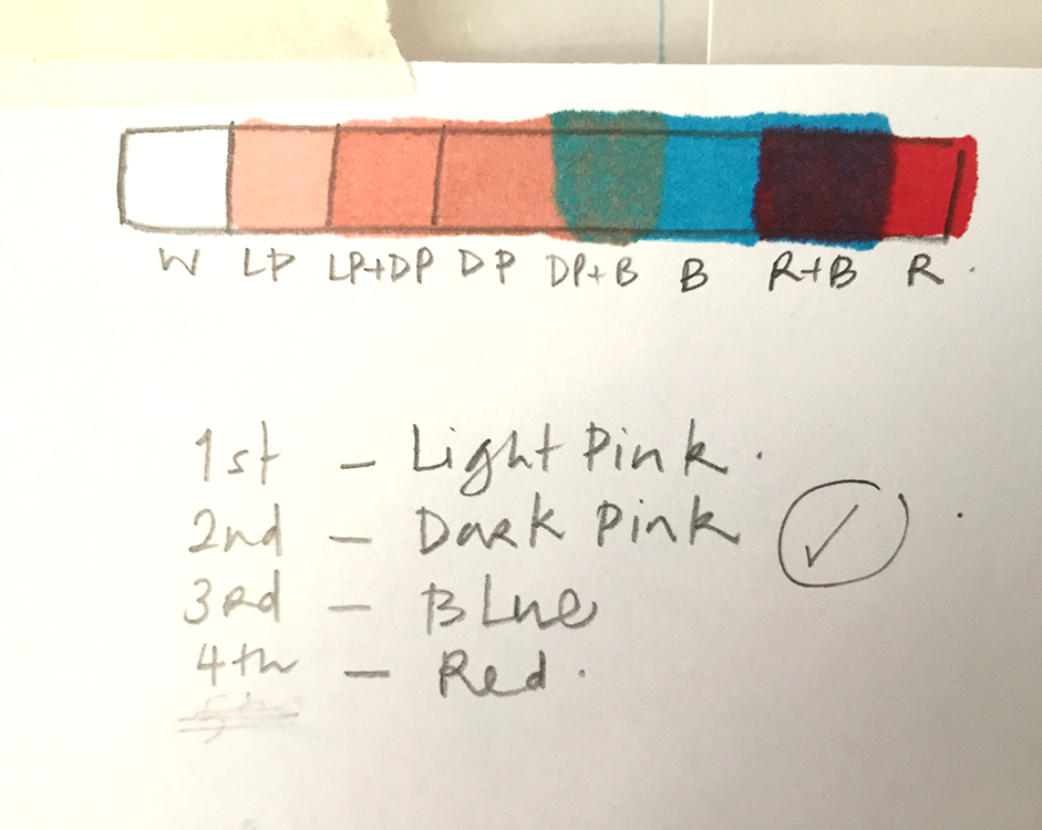 I’ll share with you my latest discovery – that a key ingredient of success, is planning. Planning generally, not just for specific image making. And here are some photos to prove that I can plan!! This is the planning involved with making a coloured screen print. I’ll be honest here – I’m not certain this print will ever get made (have I over-planned?)… but when you are freelance, every day involves assessing your most immediate priority (unless there is an immenent deadline) and things take over, move on – before you know it you have new ideas and no longer have the inclination to make this particular piece. Who knows – perhaps I will return to it before long, and you will get to see the finished image.